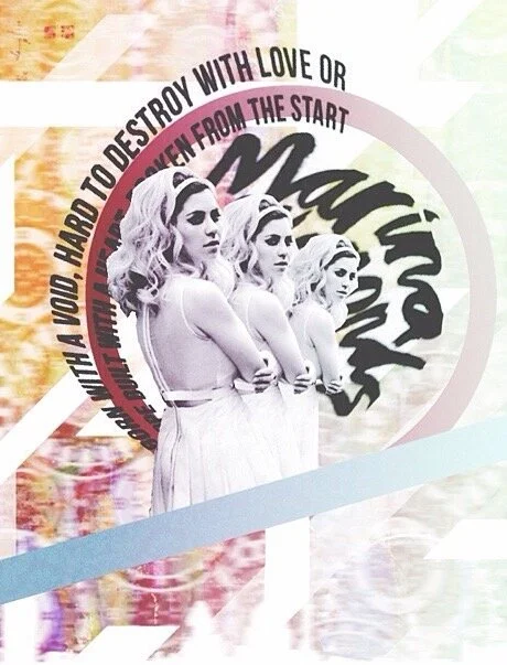 During this time I spent much of my free time creating digital collages for my Marina and the Diamonds (now known as Marina) fan page, MarinasCats. With these collages, I experimented with blending styles, fonts, textures, shapes, and a variety of different compositions to create a finished art image.